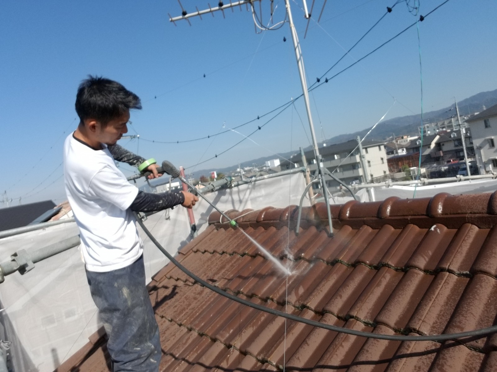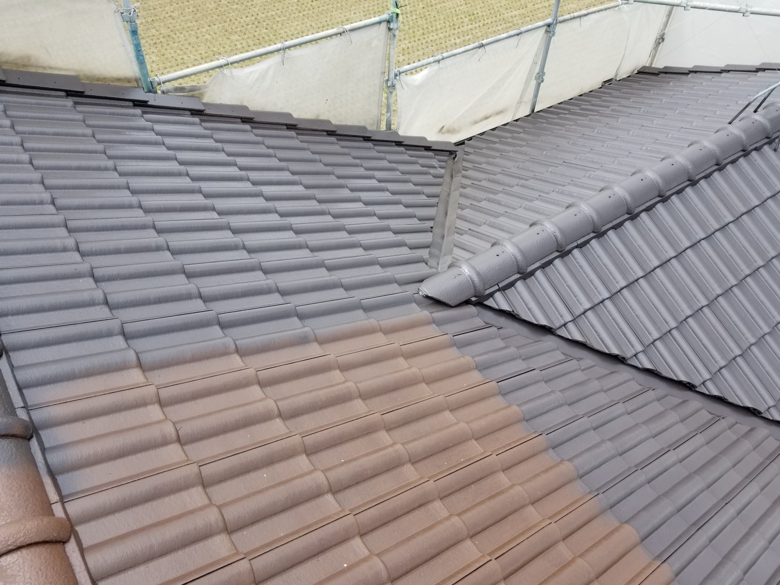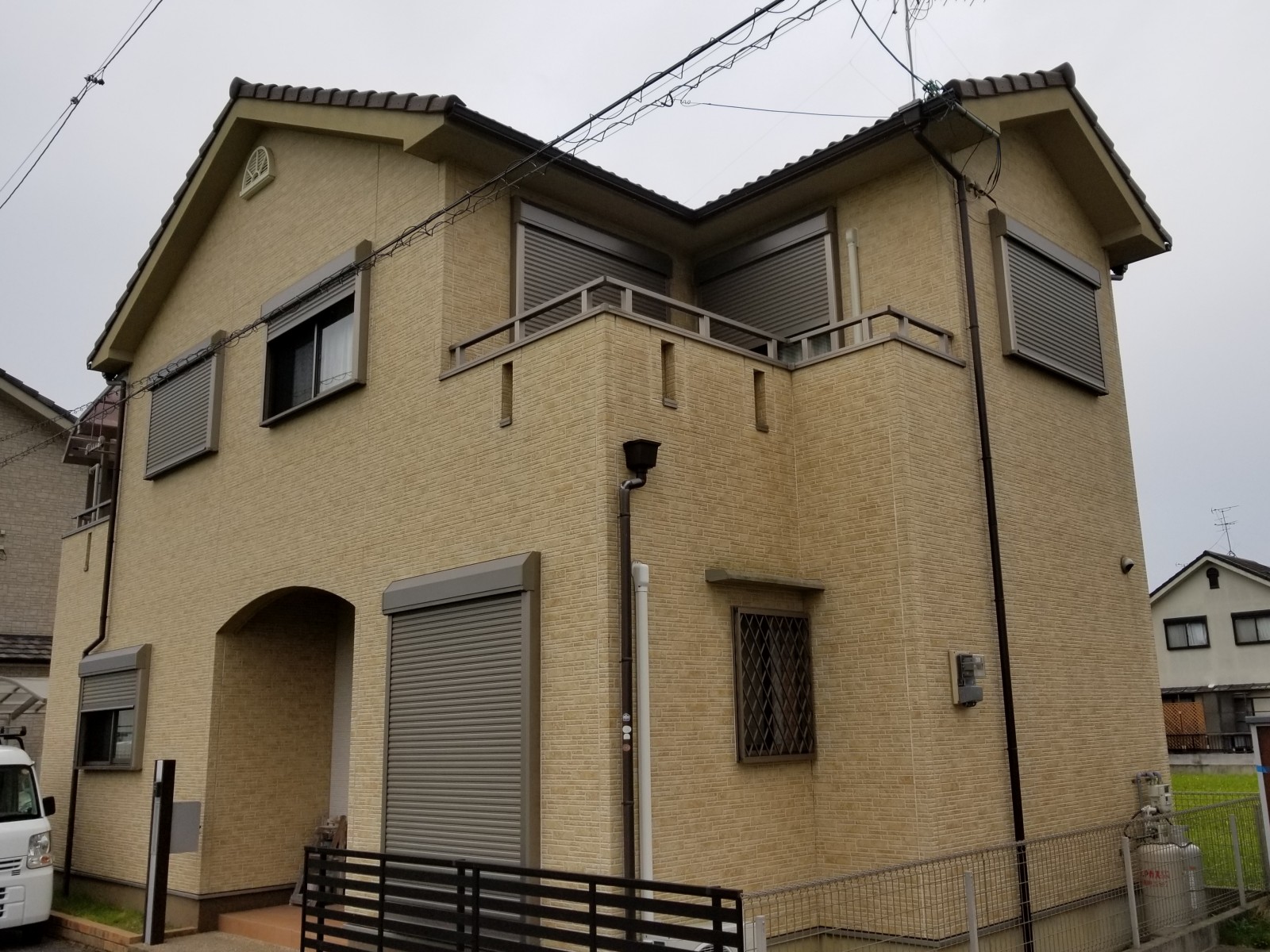 S様邸/屋根・外壁塗装 (奈良県天理市) 担当スタッフのコメント この度は当社に工事を担当させて頂きまして、誠にありがとうございました。今回の工事内容は、コーキング打ち替え、屋根塗装、外壁塗装、付帯部塗装、ベランダFRP防水トップコート塗り替え工事を行いました。屋根、付帯部はシリコン塗装、外壁はシリコンUV多彩模様にて施工させて頂きました。 屋根使用塗料・・・水谷ペイント(株) 水性ナノシリコン 外壁使用塗料・・・(株)日本ペイント 水性ペリアートUV 付帯部使用塗料・・・(株)日本ペイント ファインシリコンセラUV ベランダFRP防水トップコート使用材料・・・アイカ工業(株) ジョリエースJE-2090 BEFORE AFTER